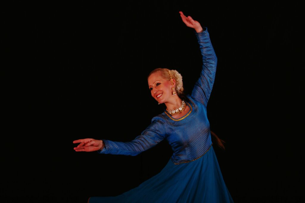 In addition to Kathak, Dietrich has received extensive training in the South Indian classical dance form Mohiniyattam under the late Kalamandalam Leelamma as well as Padma Shri awardee Bharati Shivaji. Her artistic journey integrates multiple classical traditions, creating a distinctive intercultural dance language that bridges Indian and contemporary movement practices.