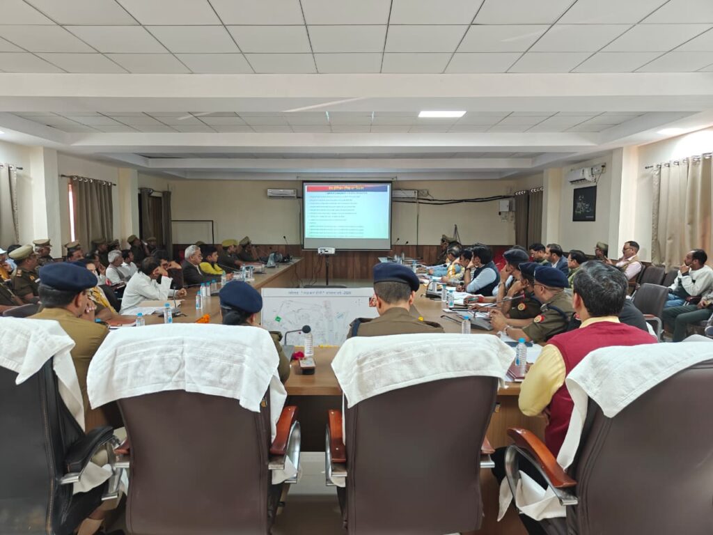 Among those present at the meeting were DFO Venkat Shrikar Patel, Additional District Magistrate (Finance & Revenue) Dr. Pankaj Kumar Verma, SP Rural Suresh Chandra Rawat, SP Traffic Manoj Kumar, SDM Goverdhan Prajakta Tripathi, Assistant Commissioner (Food Safety & Drug Administration) Dhirendra Pratap Singh, and other departmental officials.