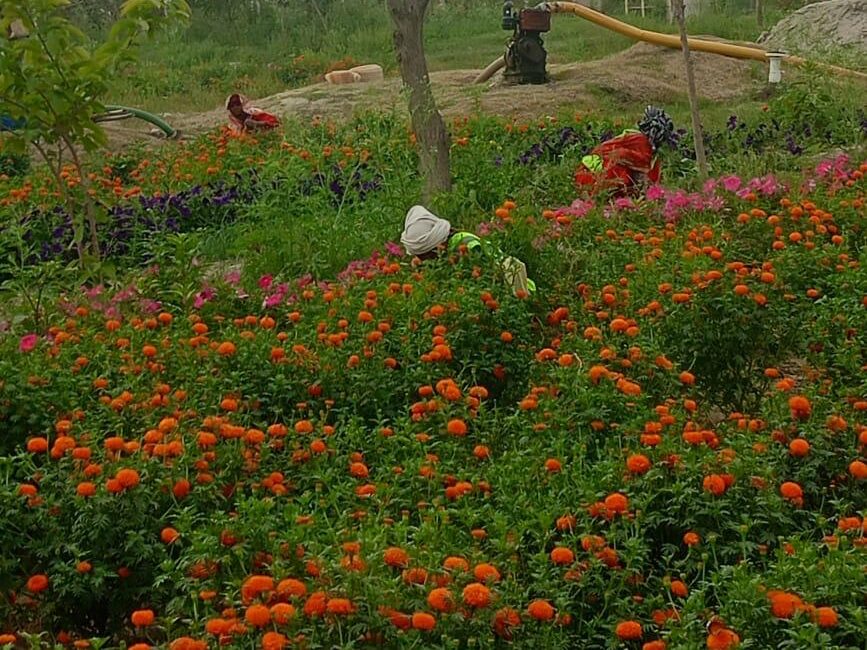 The project focuses on cultivating a wide variety of flowers across the Kumbh Mela grounds. What was once a periodically used expanse is now being thoughtfully nurtured into a flourishing green zone. The effort is not merely agricultural, it is deeply rooted in the ethos of seva, aiming to create a sustainable source of fresh, chemical free flowers for devotional offerings.