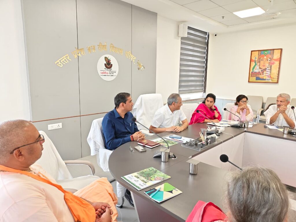 District Magistrate Chandra Prakash Singh instructed the irrigation and other concerned departments to ensure full coordination and support for the project. The meeting was attended by senior officials including Lakshmi N., Vice Chairperson of Mathura-Vrindavan Development Authority and CEO of the Parishad, along with ACEO Madan Chand Dubey, environmental expert Mukesh Sharma, Deputy CEO Satish Chandra, Shri Ravindra Chamaria, Chairman of Infinity Krishna Bhumi Group, Shri Anantveerya Das from Hare Krishna Movement and officials from agriculture, horticulture, waterworks, and irrigation departments.