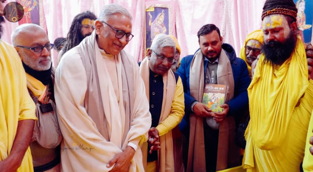 28th December, 2025 (Vrindavan Today News): The book ‘Aao Sajayein Kanha Ka Braj’ ( “Let Us Adorn Krishna’s Braj”), authored by senior journalist Shri Vineet Narain was formally released by Sant Shri Premananda Maharaj on Sunday morning at the later’s ashram in Vrindavan. Shri Vineet Narain is the founder and president of ‘The Braj Foundation’, an organistaion known for its restoration efforts of Braj’s ancient kunds and groves. After releasing the book, Sant Premanand Ji Maharaj underscored the spiritual responsibility of protecting Braj’s sacred ecology, including its forests, trees, water bodies, kunds and pilgrimage sites. He stated that devotion to Radha and Krishna is incomplete without service to the land where their divine pastimes unfolded. He expressed hope that the book would deepen awareness and reverence for Braj among devotees in India and abroad. He blessed the author for his effort in serving Braj and expressed confidence that the book would serve as a lasting testament to devotion, service and responsibility toward one of the world’s most sacred living landscapes.