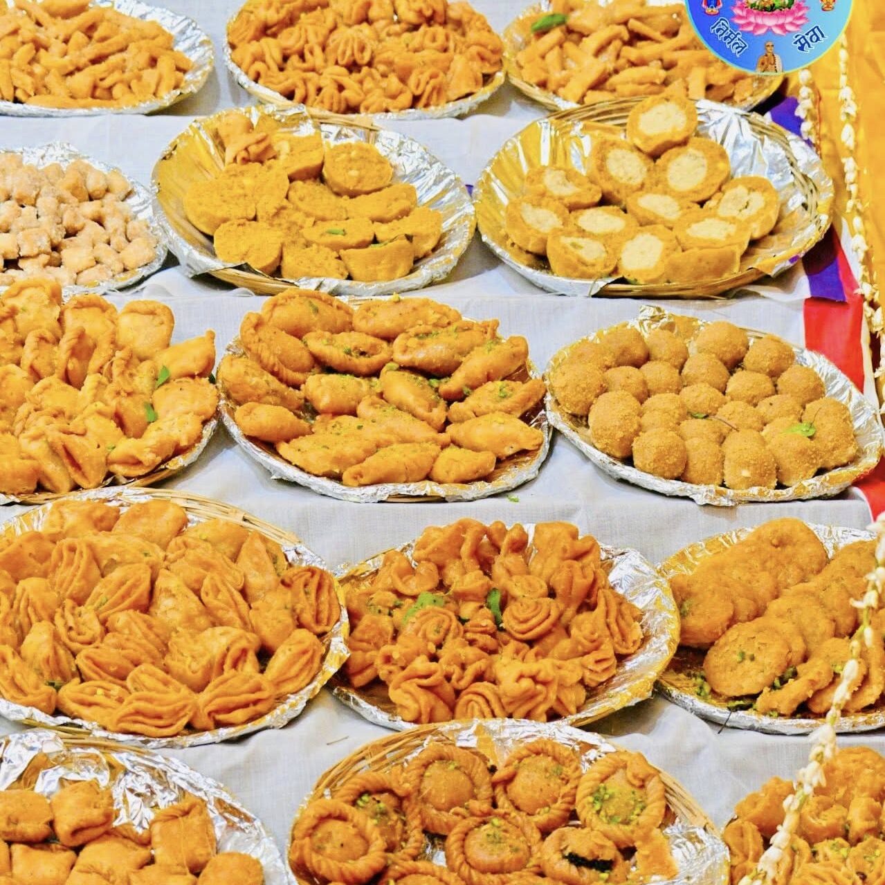 Even today, the temples of Vrindavan celebrate Govardhan Puja and Annakoot with the same ancient devotion. The prasadam offered to the Lord is prepared according to traditional rules, with dozens of varieties of food emerging from the sacred kitchens. The Chhappan Bhog includes rice, kadhi, kheer, millet, roti, phulka, laddoo, choorma, gunja, malpua, dahi vada, ras panchami, saunth, basundi, mohanthal, chandrakala, jalebi, sikharan, potato, sweet potato, sakarpara, mangoda, papad and more. Alongside these age-old dishes, modern sweets and savories like mini kachori, doda barfi, gulab jamun, mava chamcham, and bird-shaped samosa also find a place — blending tradition with innovation.