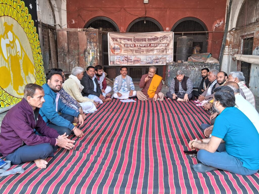 29th November, 2025 (Vrindavan Today News): A meeting of the Braj Vrindavan Devalaya Samiti was held at the ancient Vanshivat Temple in Vrindavan, where representatives from various temples and religious institutions shared their views. The speakers emphasized that Vrindavan is itself a sacred deity and temple-like city, whose boundary is the Vrindavan Parikrama Marg, encompassing an area barely three kilometers wide in aerial distance.