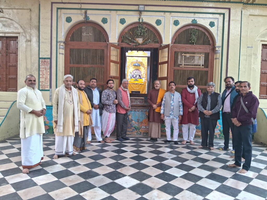 Among those present were Shri Krishna Chandra Goswami (Vibhas), Shri Rajat Goswami, Shri Dev Goswami, Shri Gopesh Kumar Goswami, Shri Gopal Krishna Goswami, Shri Govind Pandey, Shri Deepak Goswami, Mahant Shri Govind Sharma, Shri Anuj Sharma, Shri Rudra Pratap Singh, Shri Lakshmi Narayan Tiwari, Shri Brajesh Shukla, and Shubham Sikrawar, among others.